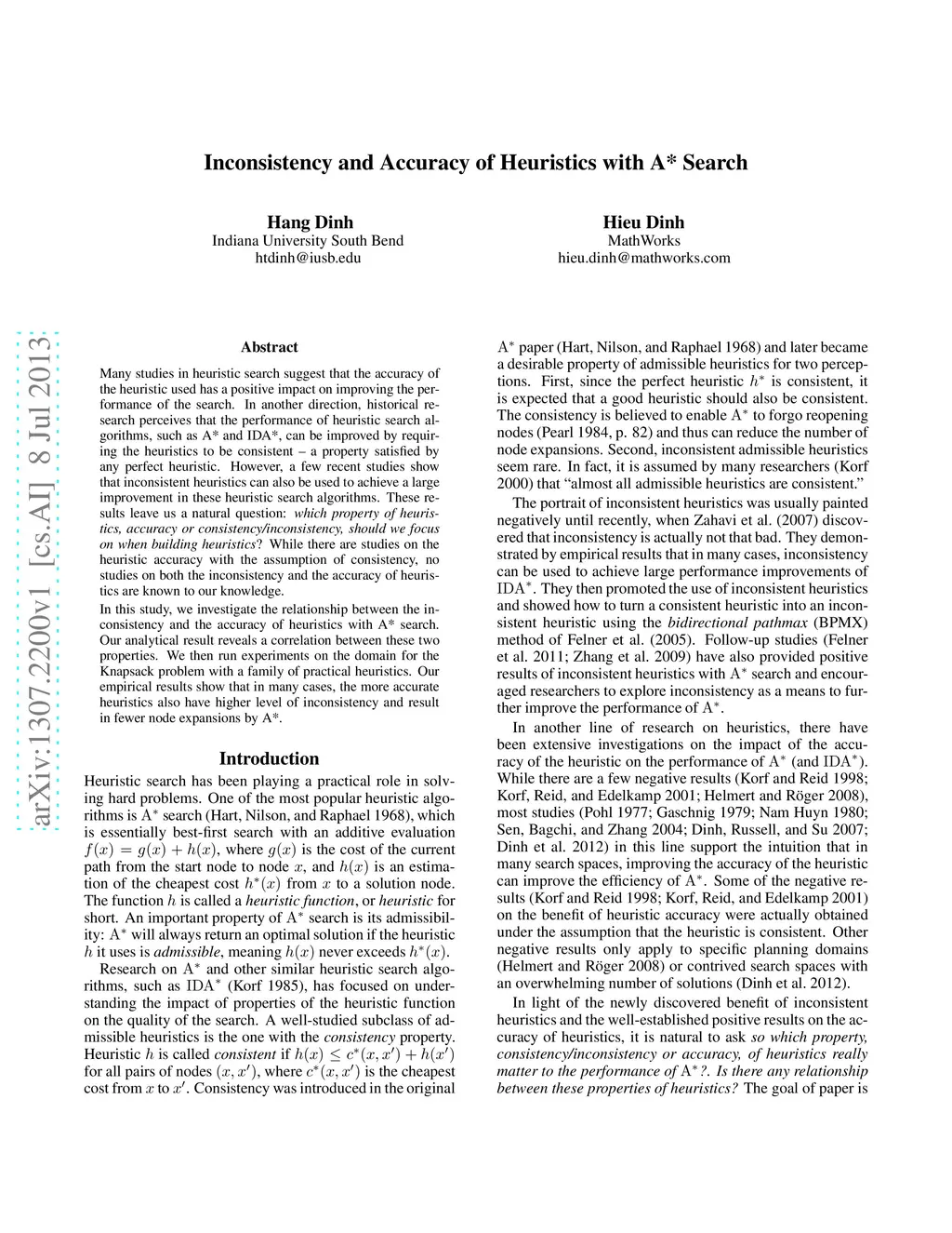 Inconsistency and Accuracy of Heuristics with A* Search