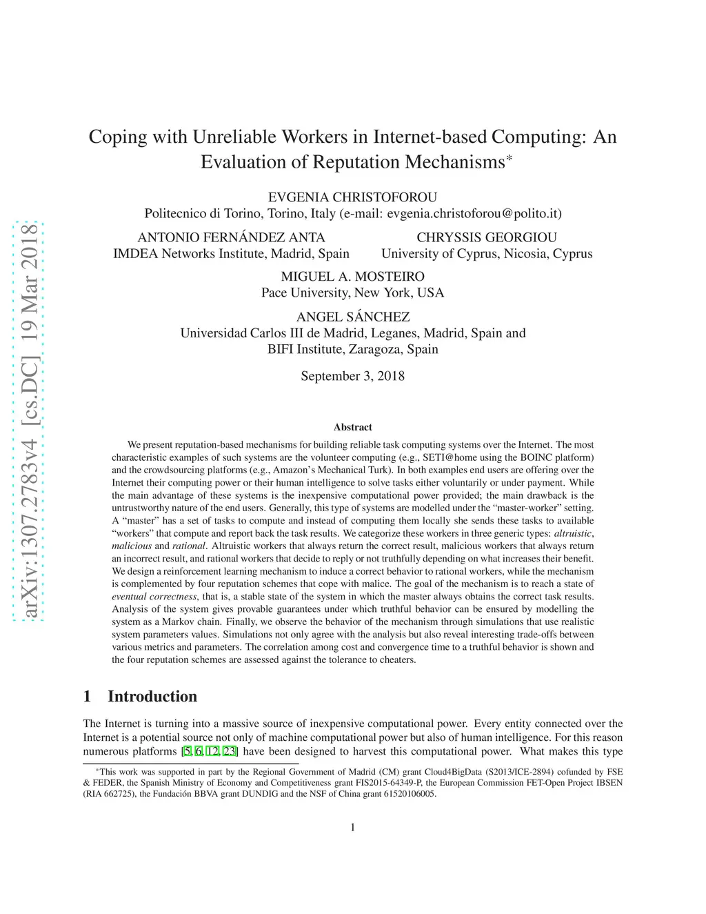 We present reputation-based mechanisms for building reliable task computing systems over the Internet. The most characteristic examples of such systems are the volunteer computing and the crowdsourcing platforms. In both examples end users are offering over the Internet their computing power or their human intelligence to solve tasks either voluntarily or under payment. While the main advantage of these systems is the inexpensive computational power provided, the main drawback is the untrustworthy nature of the end users. Generally, this type of systems are modeled under the "master-worker" setting. A "master" has a set of tasks to compute and instead of computing them locally she sends these tasks to available "workers" that compute and report back the task results. We categorize these workers in three generic types: altruistic, malicious and rational. Altruistic workers that always return the correct result, malicious workers that always return an incorrect result, and rational workers that decide to reply or not truthfully depending on what increases their benefit. We design a reinforcement learning mechanism to induce a correct behavior to rational workers, while the mechanism is complemented by four reputation schemes that cope with malice. The goal of the mechanism is to reach a state of eventual correctness, that is, a stable state of the system in which the master always obtains the correct task results. Analysis of the system gives provable guarantees under which truthful behavior can be ensured. Finally, we observe the behavior of the mechanism through simulations that use realistic system parameters values. Simulations not only agree with the analysis but also reveal interesting trade-offs between various metrics and parameters. Finally, the four reputation schemes are assessed against the tolerance to cheaters.
