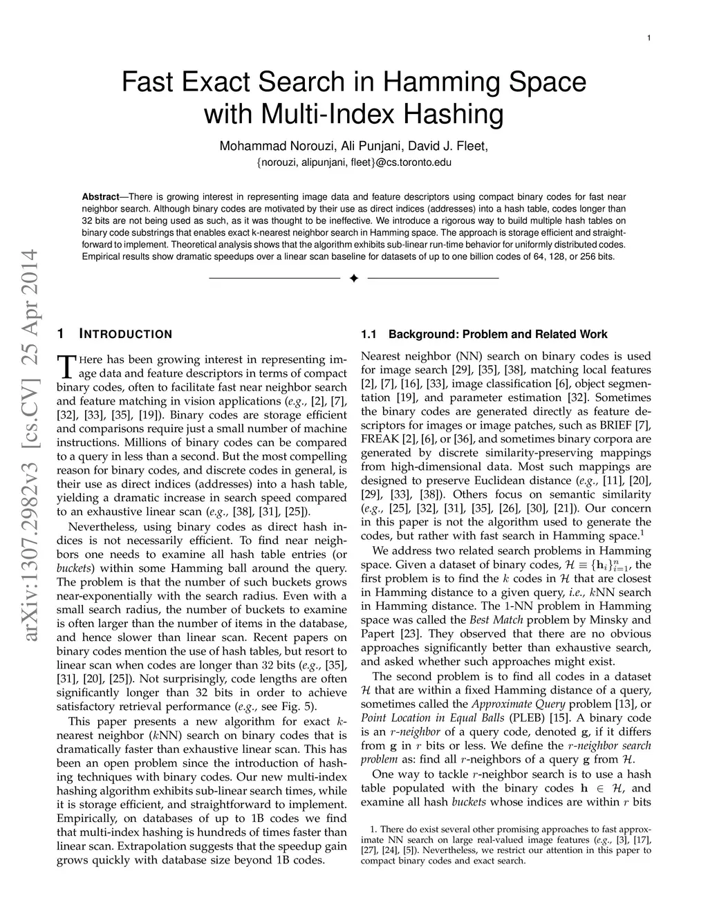 Fast Exact Search in Hamming Space with Multi-Index Hashing