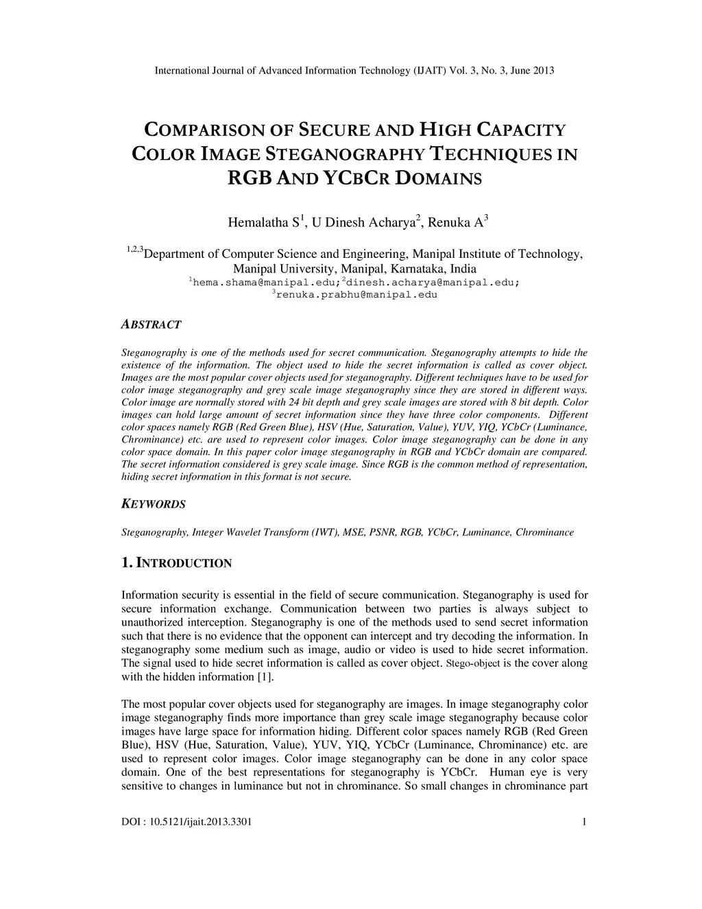 Comparison of secure and high capacity color image steganography