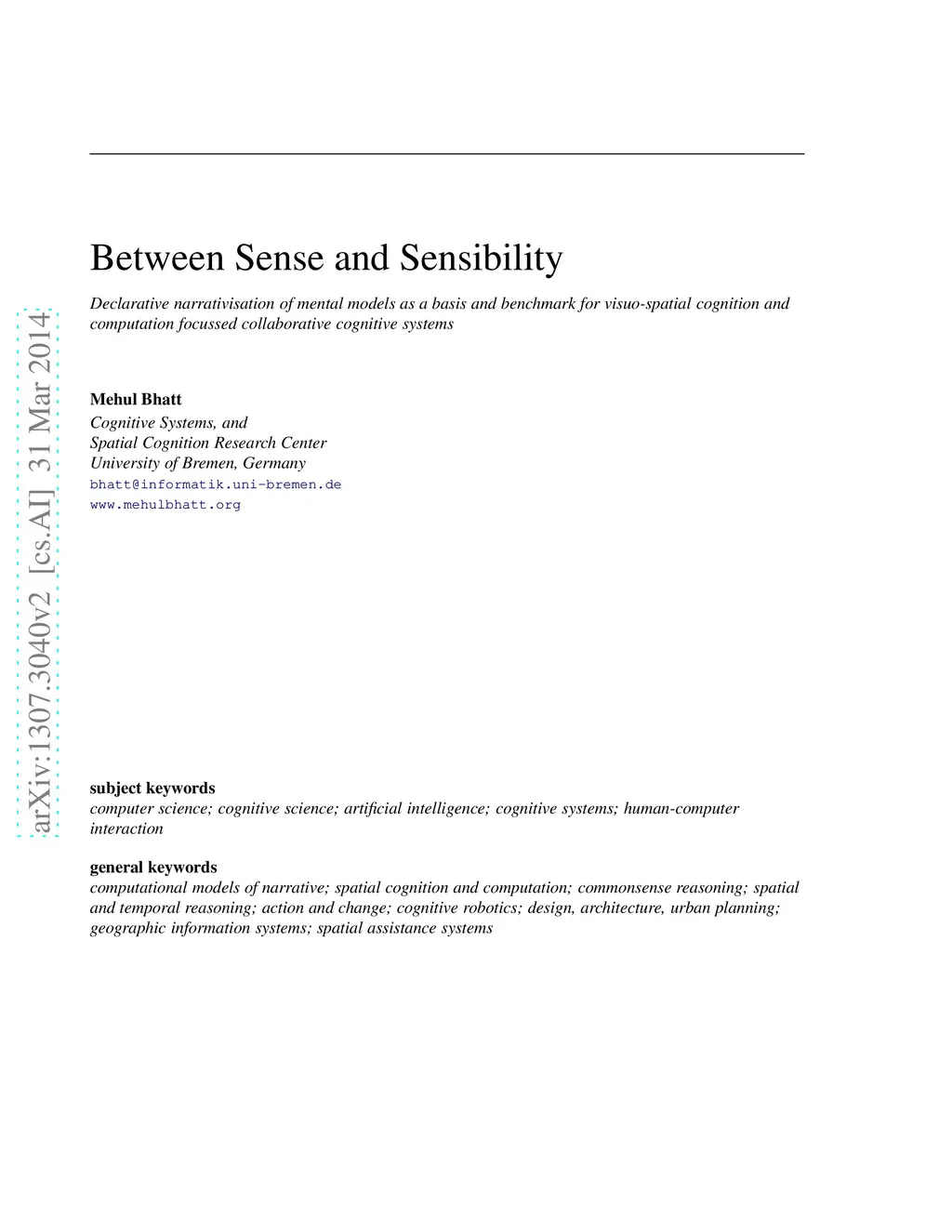 What lies between `\emph{sensing}' and `\emph{sensibility}'? In other words, what kind of cognitive processes mediate sensing capability, and the formation of sensible impressions ---e.g., abstractions, analogies, hypotheses and theory formation, beliefs and their revision, argument formation--- in domain-specific problem solving, or in regular activities of everyday living, working and simply going around in the environment? How can knowledge and reasoning about such capabilities, as exhibited by humans in particular problem contexts, be used as a model and benchmark for the development of collaborative cognitive (interaction) systems concerned with human assistance, assurance, and empowerment? We pose these questions in the context of a range of assistive technologies concerned with \emph{visuo-spatial perception and cognition} tasks encompassing aspects such as commonsense, creativity, and the application of specialist domain knowledge and problem-solving thought processes. Assistive technologies being considered include: (a) human activity interpretation; (b) high-level cognitive rovotics; (c) people-centred creative design in domains such as architecture & digital media creation, and (d) qualitative analyses geographic information systems. Computational narratives not only provide a rich cognitive basis, but they also serve as a benchmark of functional performance in our development of computational cognitive assistance systems. We posit that computational narrativisation pertaining to space, actions, and change provides a useful model of \emph{visual} and \emph{spatio-temporal thinking} within a wide-range of problem-solving tasks and application areas where collaborative cognitive systems could serve an assistive and empowering function.