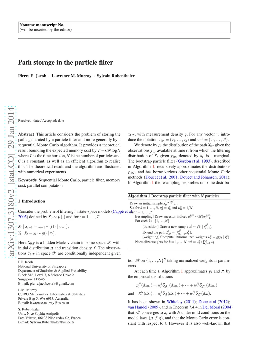 Path storage in the particle filter