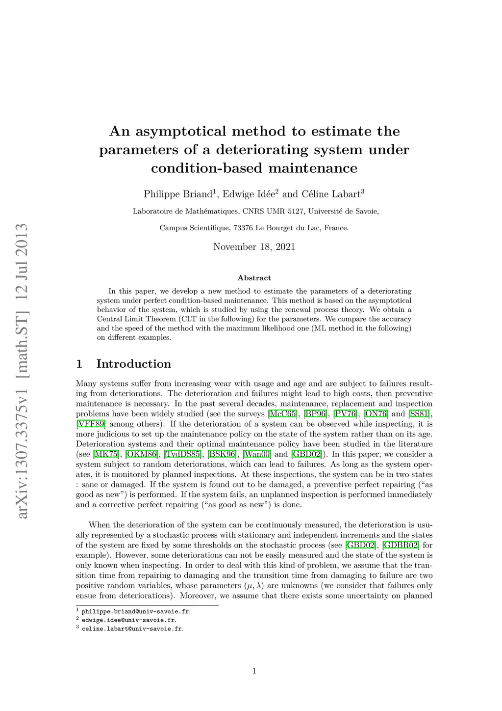 In this paper, we develop a new method to estimate the parameters of a deteriorating system under perfect condition-based maintenance. This method is based on the asymptotical behavior of the system, which is studied by using the renewal process theory. We obtain a Central Limit Theorem (CLT in the following) for the parameters. We compare the accuracy and the speed of the method with the maximum likelihood one (ML method in the following) on different examples.