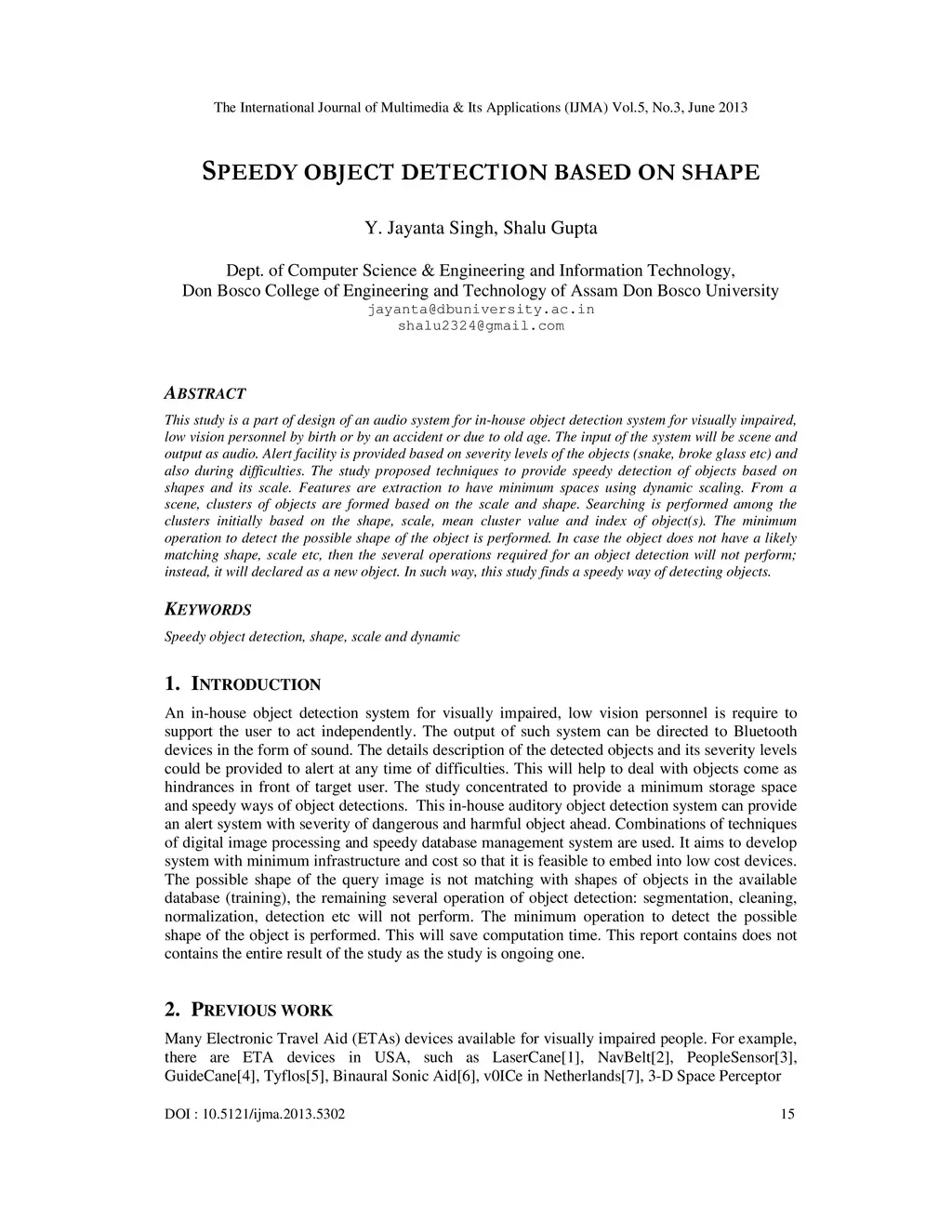 This study is a part of design of an audio system for in-house object detection system for visually impaired, low vision personnel by birth or by an accident or due to old age. The input of the system will be scene and output as audio. Alert facility is provided based on severity levels of the objects (snake, broke glass etc) and also during difficulties. The study proposed techniques to provide speedy detection of objects based on shapes and its scale. Features are extraction to have minimum spaces using dynamic scaling. From a scene, clusters of objects are formed based on the scale and shape. Searching is performed among the clusters initially based on the shape, scale, mean cluster value and index of object(s). The minimum operation to detect the possible shape of the object is performed. In case the object does not have a likely matching shape, scale etc, then the several operations required for an object detection will not perform; instead, it will declared as a new object. In such way, this study finds a speedy way of detecting objects.