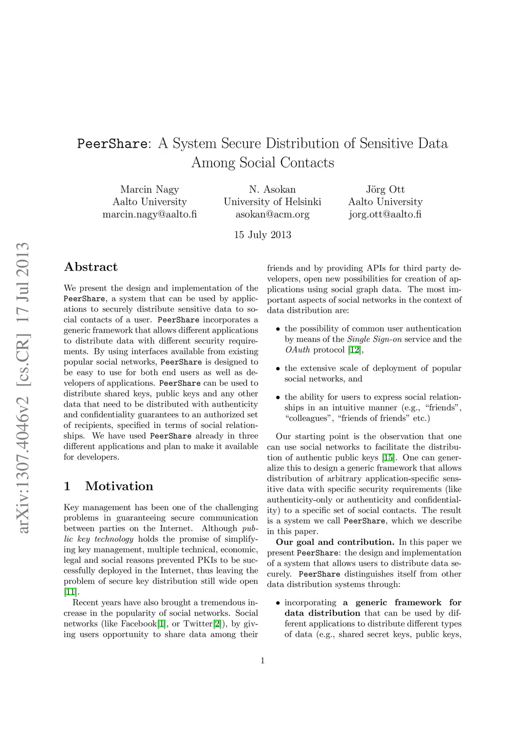 PeerShare: A System Secure Distribution of Sensitive Data Among Social