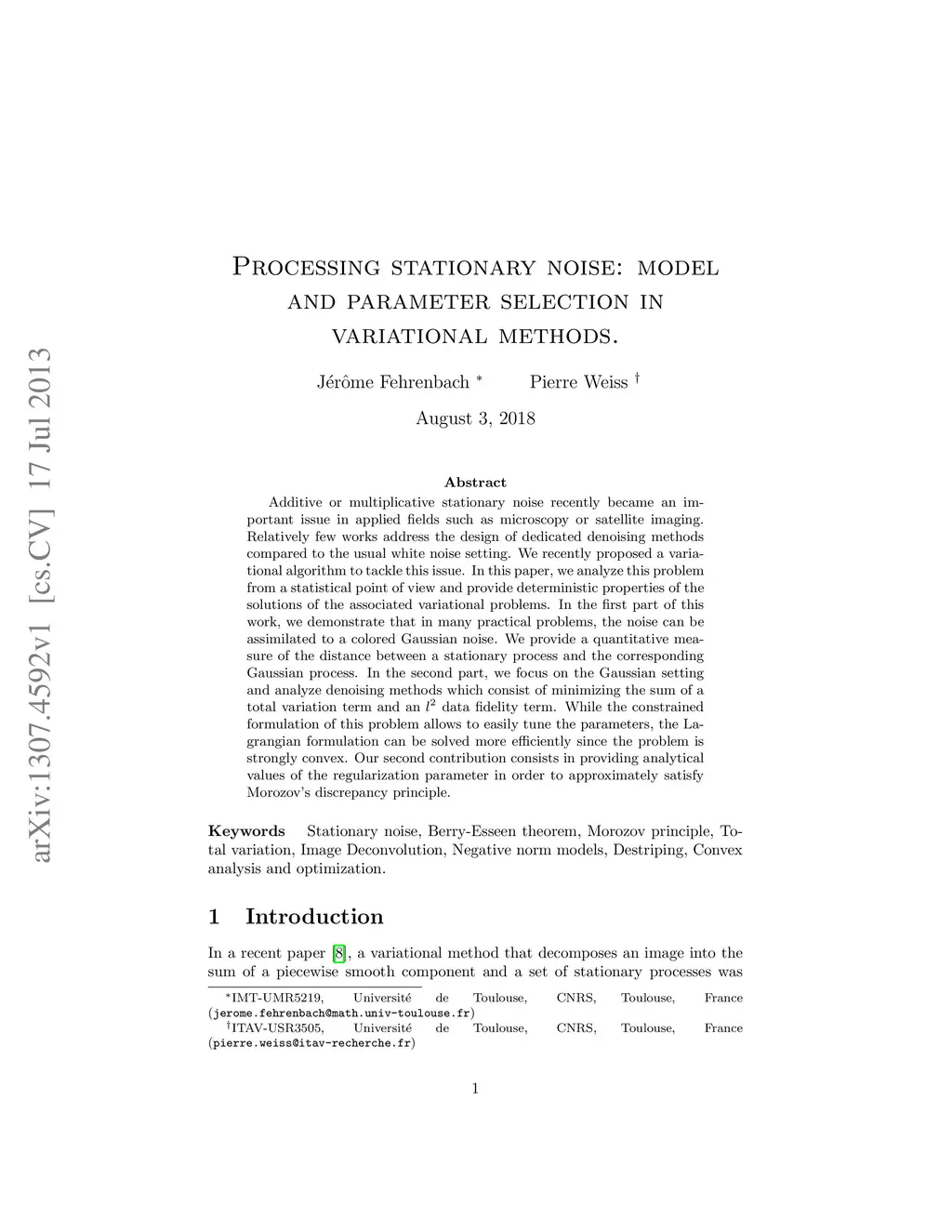 Additive or multiplicative stationary noise recently became an important issue in applied fields such as microscopy or satellite imaging. Relatively few works address the design of dedicated denoising methods compared to the usual white noise setting. We recently proposed a variational algorithm to tackle this issue. In this paper, we analyze this problem from a statistical point of view and provide deterministic properties of the solutions of the associated variational problems. In the first part of this work, we demonstrate that in many practical problems, the noise can be assimilated to a colored Gaussian noise. We provide a quantitative measure of the distance between a stationary process and the corresponding Gaussian process. In the second part, we focus on the Gaussian setting and analyze denoising methods which consist of minimizing the sum of a total variation term and an data fidelity term. While the constrained formulation of this problem allows to easily tune the parameters, the Lagrangian formulation can be solved more efficiently since the problem is strongly convex. Our second contribution consists in providing analytical values of the regularization parameter in order to approximately satisfy Morozov's discrepancy principle.