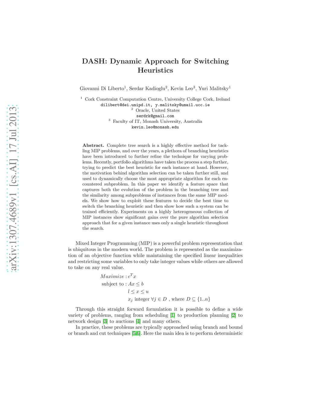 DASH: Dynamic Approach for Switching Heuristics