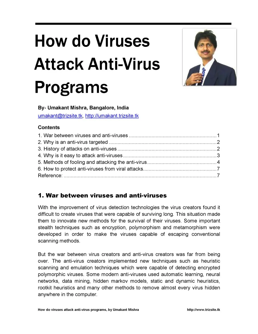 How do Viruses Attack Anti-Virus Programs