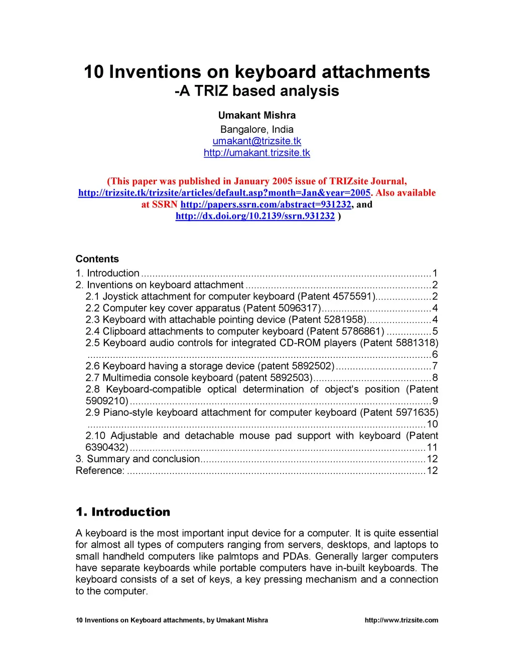 10 Inventions on keyboard attachments-A TRIZ based analysis