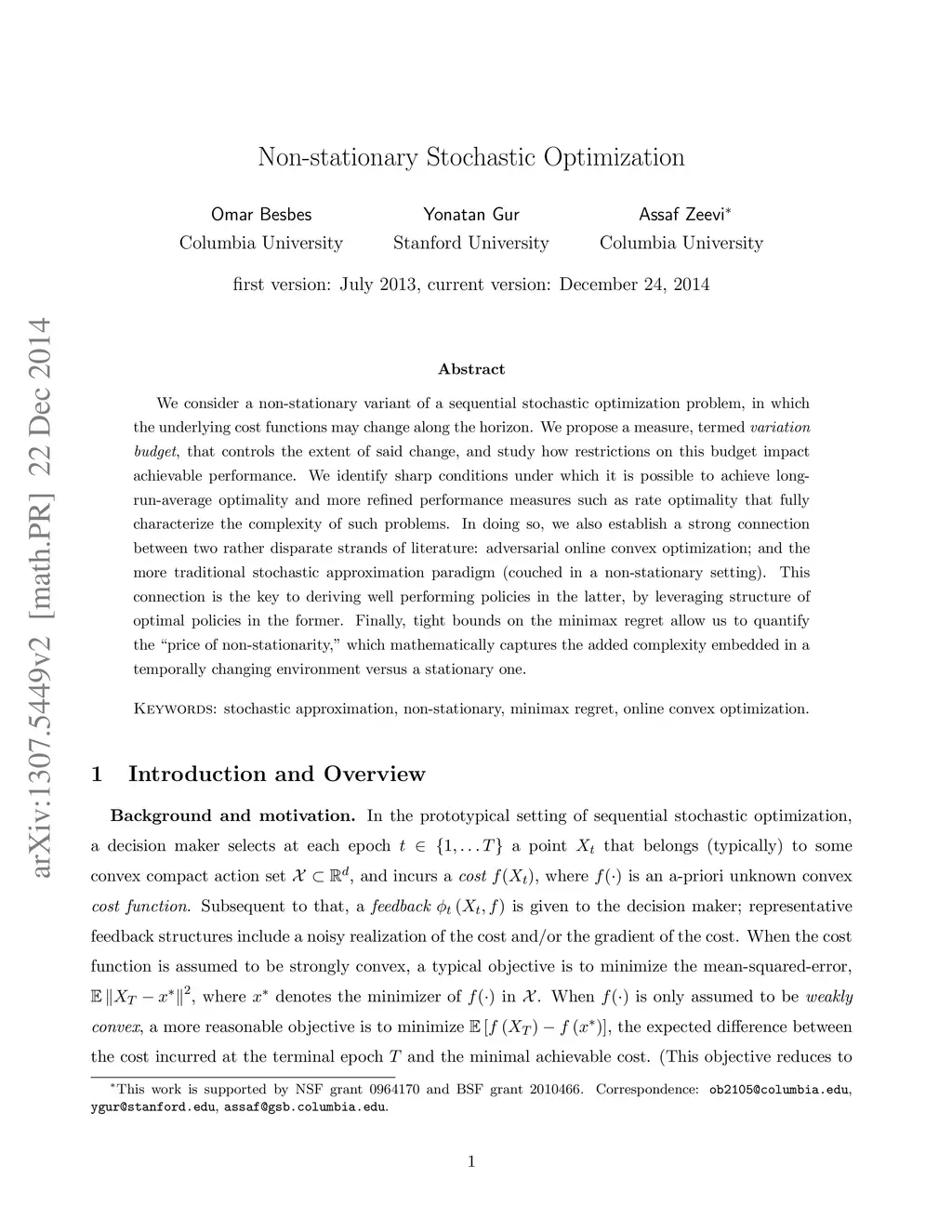 We consider a non-stationary variant of a sequential stochastic optimization problem, in which the underlying cost functions may change along the horizon. We propose a measure, termed variation budget, that controls the extent of said change, and study how restrictions on this budget impact achievable performance. We identify sharp conditions under which it is possible to achieve long-run-average optimality and more refined performance measures such as rate optimality that fully characterize the complexity of such problems. In doing so, we also establish a strong connection between two rather disparate strands of literature: adversarial online convex optimization; and the more traditional stochastic approximation paradigm (couched in a non-stationary setting). This connection is the key to deriving well performing policies in the latter, by leveraging structure of optimal policies in the former. Finally, tight bounds on the minimax regret allow us to quantify the "price of non-stationarity," which mathematically captures the added complexity embedded in a temporally changing environment versus a stationary one.