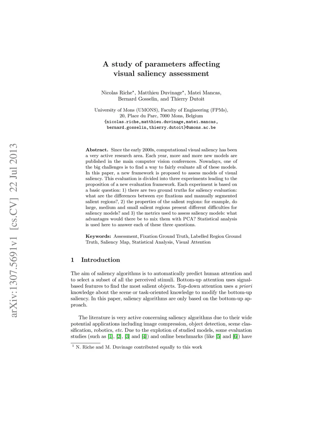 A study of parameters affecting visual saliency assessment
