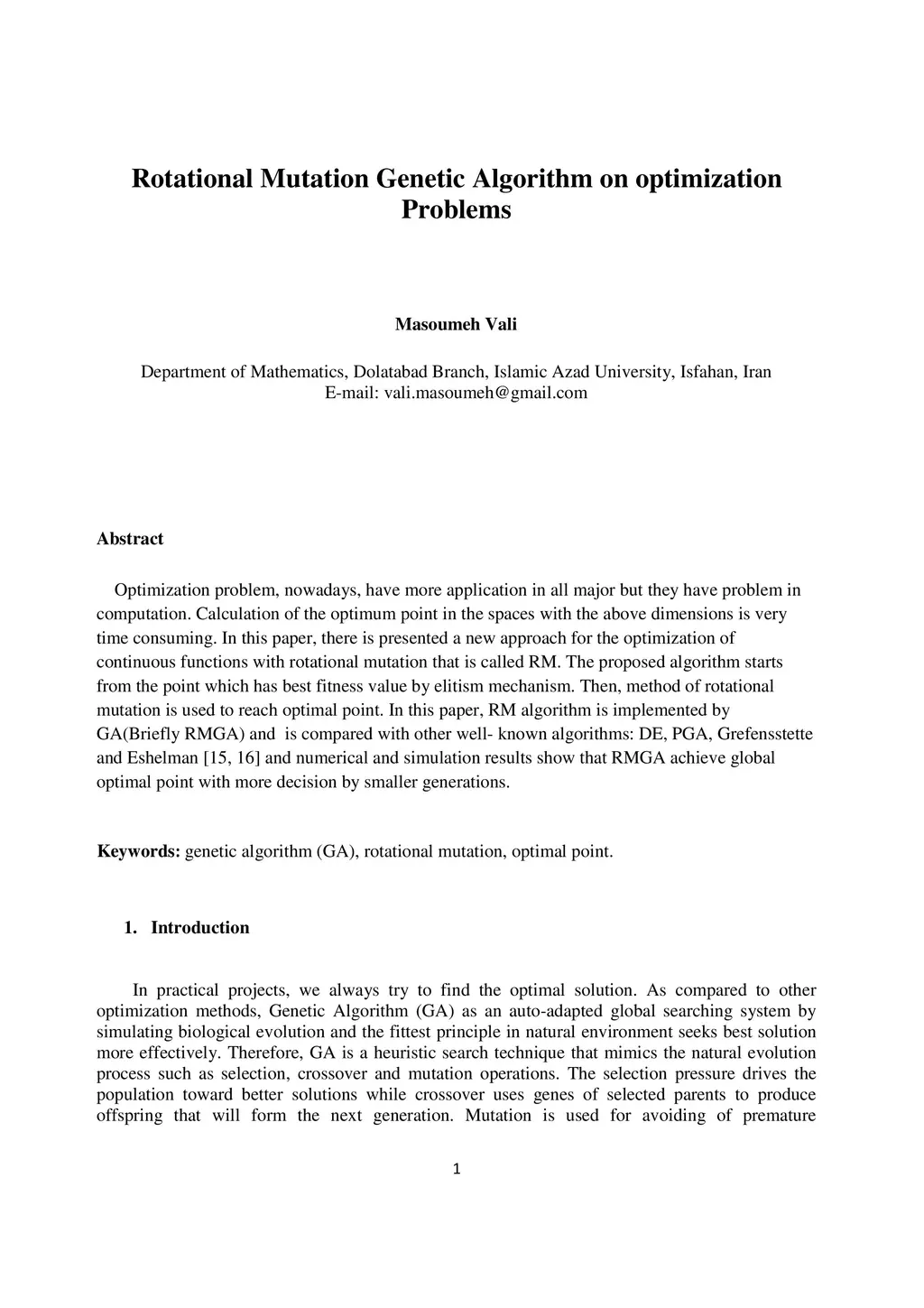 Rotational Mutation Genetic Algorithm on optimization Problems