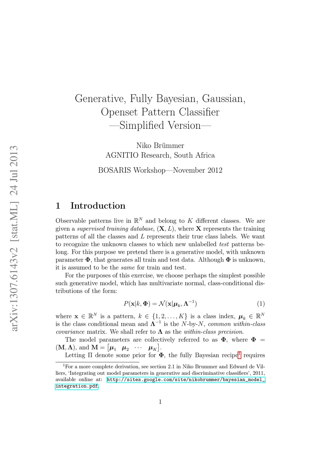 Generative, Fully Bayesian, Gaussian, Openset Pattern Classifier