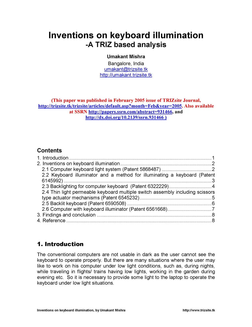 Inventions on Keyboard Illumination - A TRIZ Based Analysis