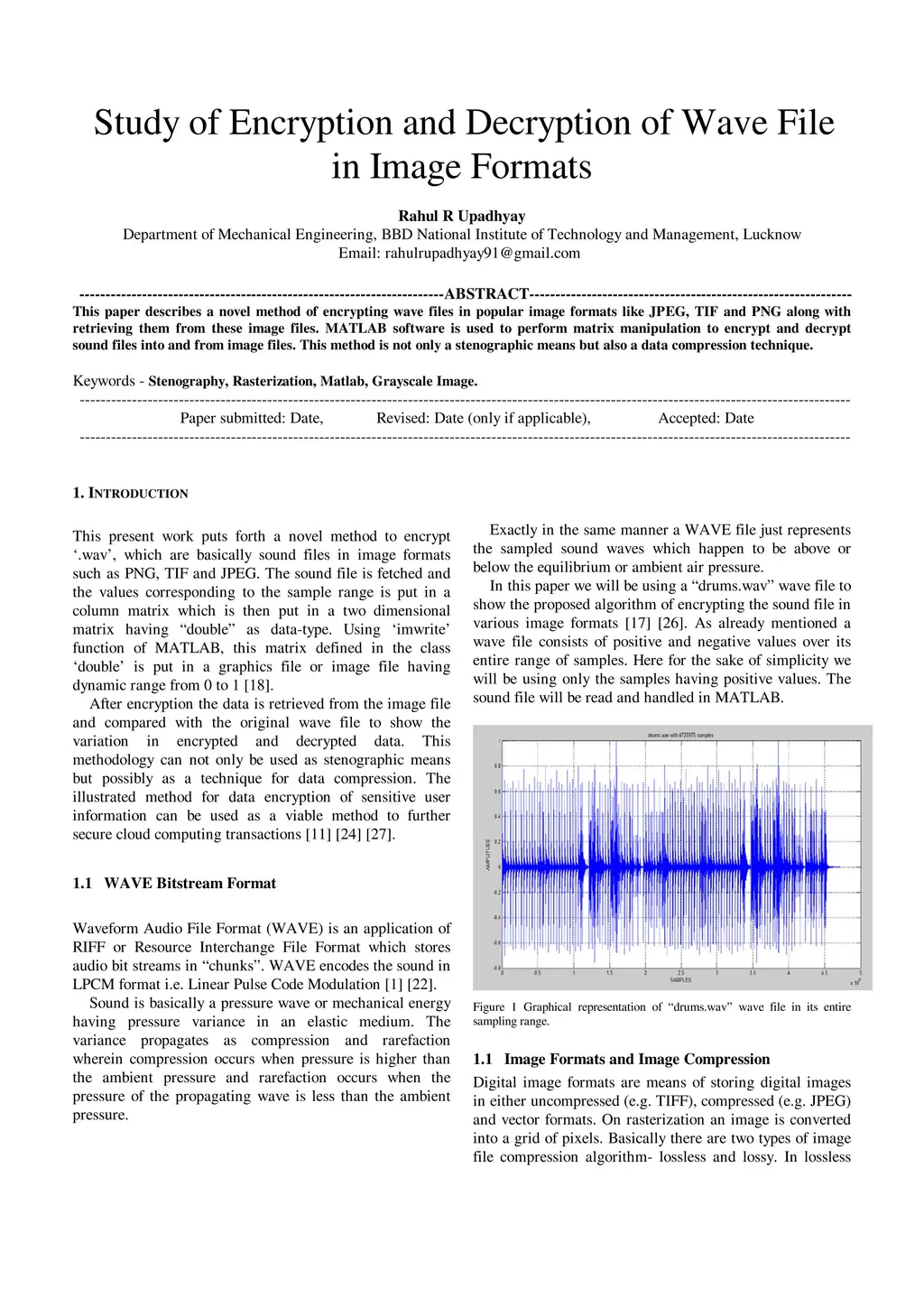 Study of Encryption and Decryption of Wave File in Image Formats
