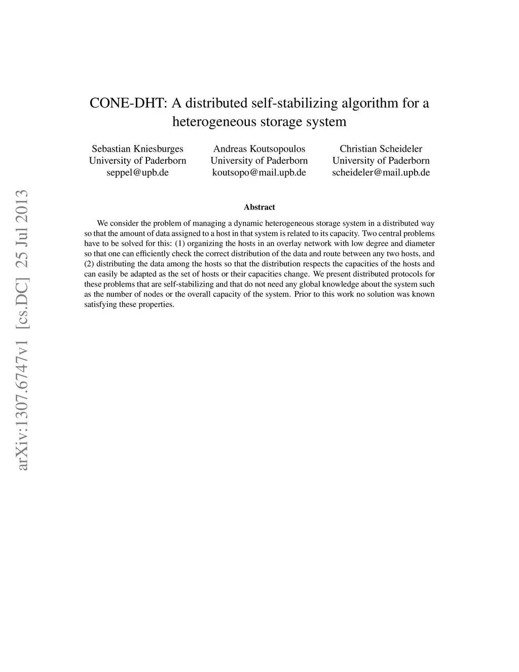 CONE-DHT: A distributed self-stabilizing algorithm for a heterogeneous