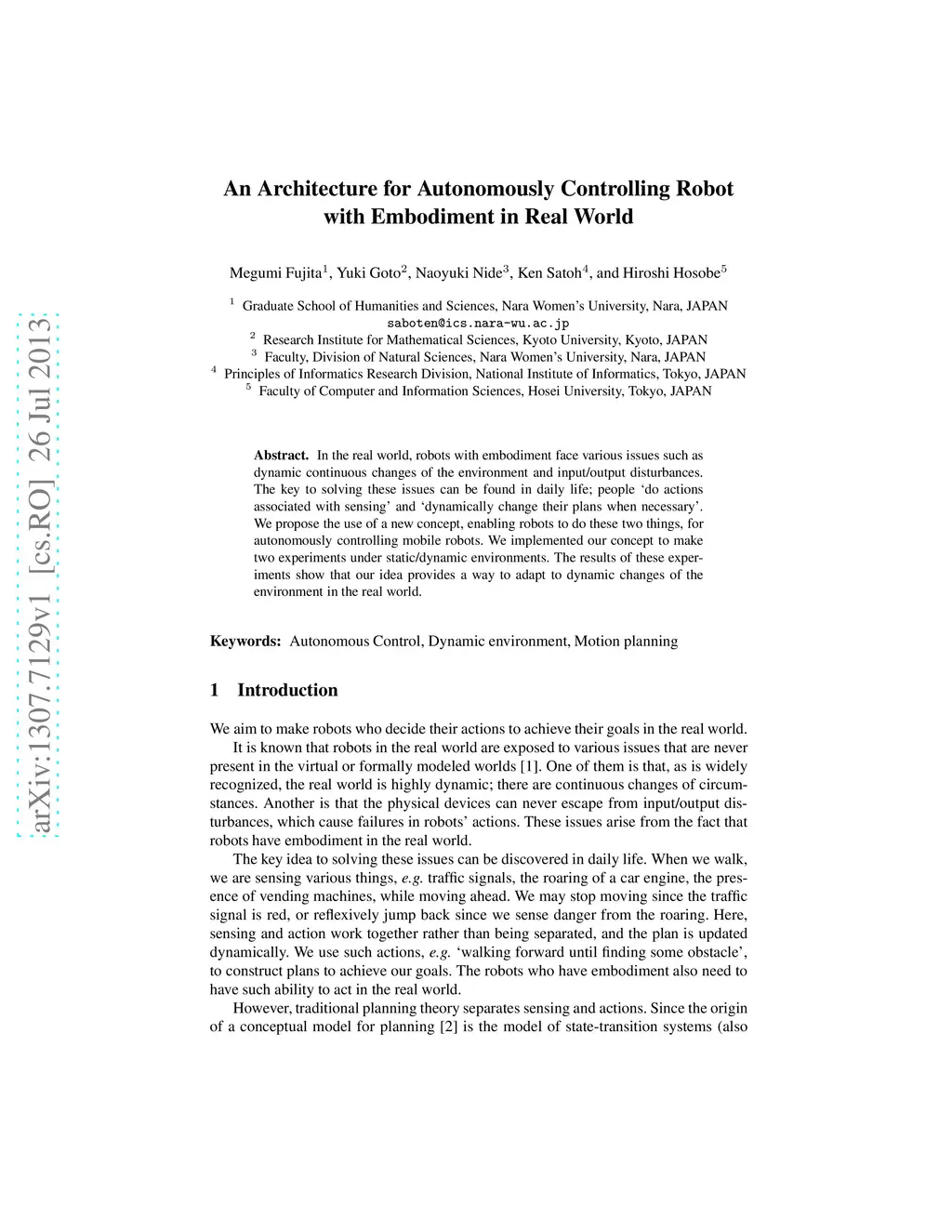 An Architecture for Autonomously Controlling Robot with Embodiment in