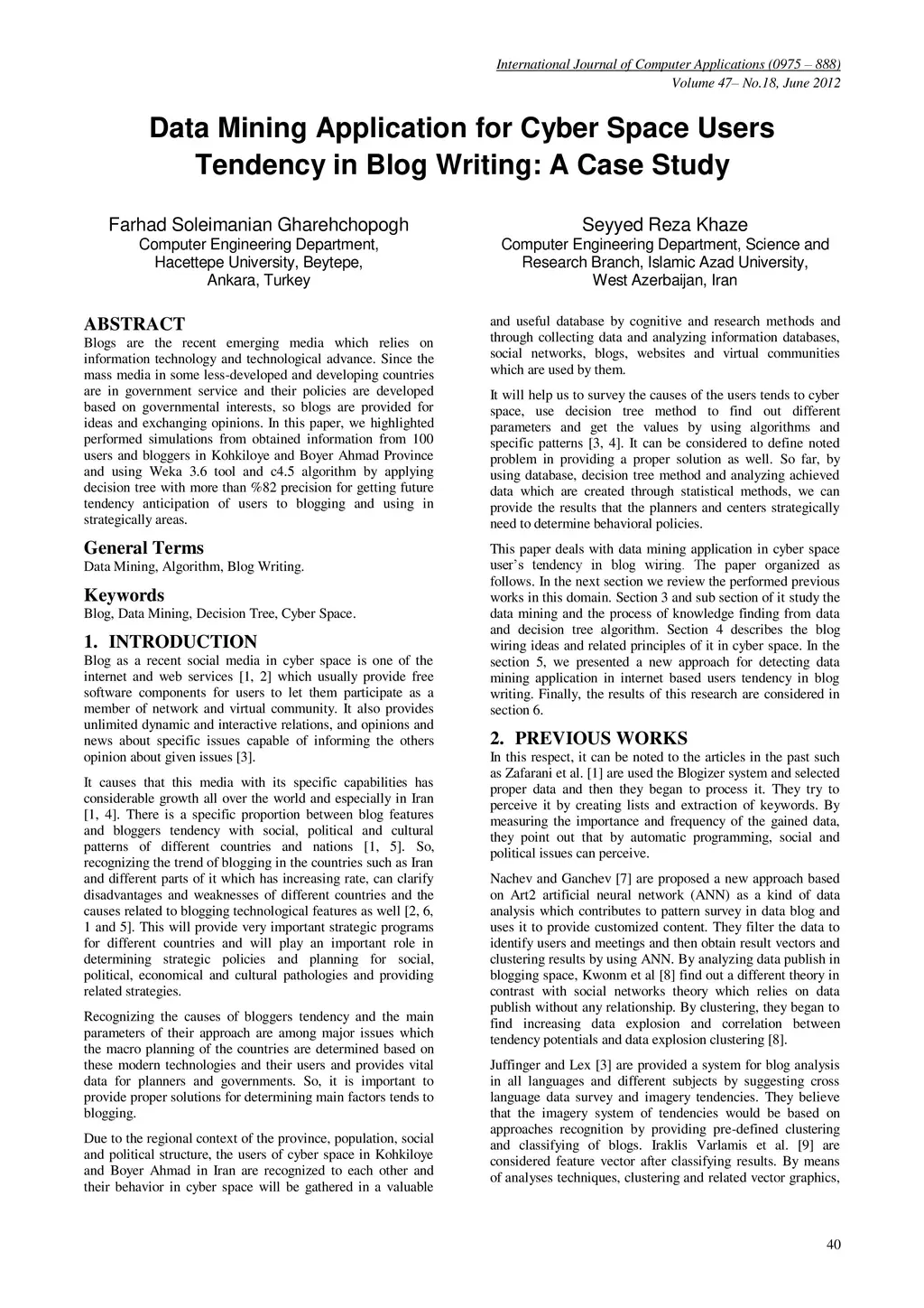 Blogs are the recent emerging media which relies on information technology and technological advance. Since the mass media in some less-developed and developing countries are in government service and their policies are developed based on governmental interests, so blogs are provided for ideas and exchanging opinions. In this paper, we highlighted performed simulations from obtained information from 100 users and bloggers in Kohkiloye and Boyer Ahmad Province and using Weka 3.6 tool and c4.5 algorithm by applying decision tree with more than %82 precision for getting future tendency anticipation of users to blogging and using in strategically areas.