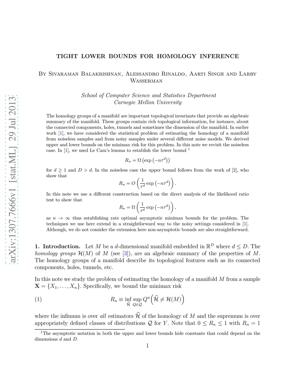 The homology groups of a manifold are important topological invariants that provide an algebraic summary of the manifold. These groups contain rich topological information, for instance, about the connected components, holes, tunnels and sometimes the dimension of the manifold. In earlier work, we have considered the statistical problem of estimating the homology of a manifold from noiseless samples and from noisy samples under several different noise models. We derived upper and lower bounds on the minimax risk for this problem. In this note we revisit the noiseless case. In previous work we used Le Cam's lemma to establish a lower bound that differed from the upper bound of Niyogi, Smale and Weinberger by a polynomial factor in the condition number. In this note we use a different construction based on the direct analysis of the likelihood ratio test to show that the upper bound of Niyogi, Smale and Weinberger is in fact tight, thus establishing rate optimal asymptotic minimax bounds for the problem. The techniques we use here extend in a straightforward way to the noisy settings considered in our earlier work.