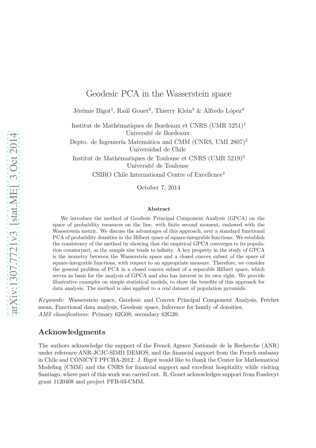 Geodesic PCA in the Wasserstein space