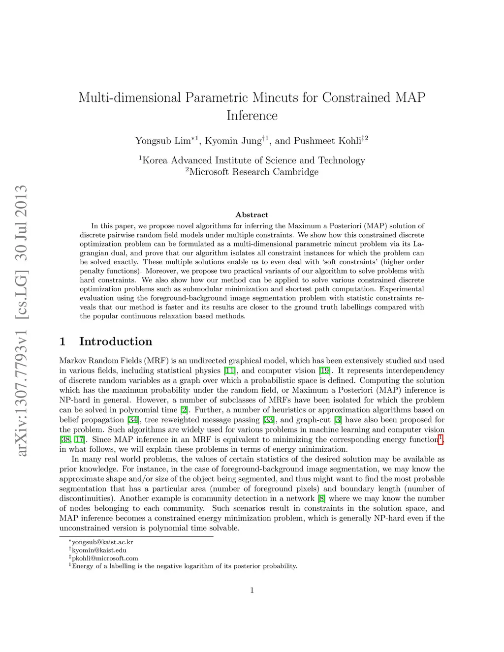 Multi-dimensional Parametric Mincuts for Constrained MAP Inference