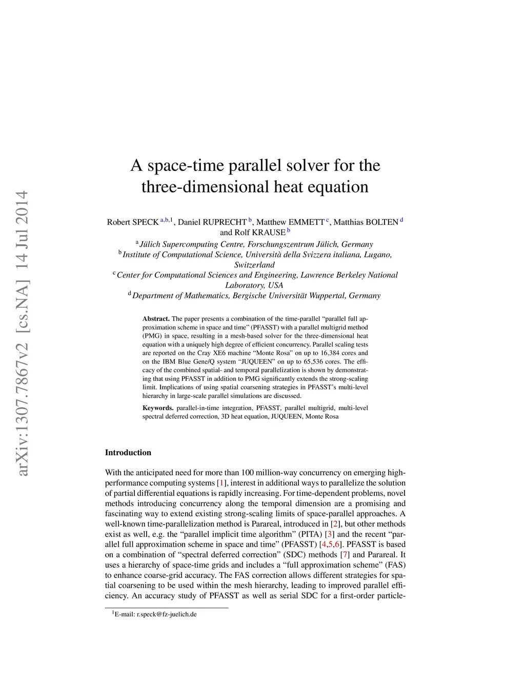 A space-time parallel solver for the three-dimensional heat equation