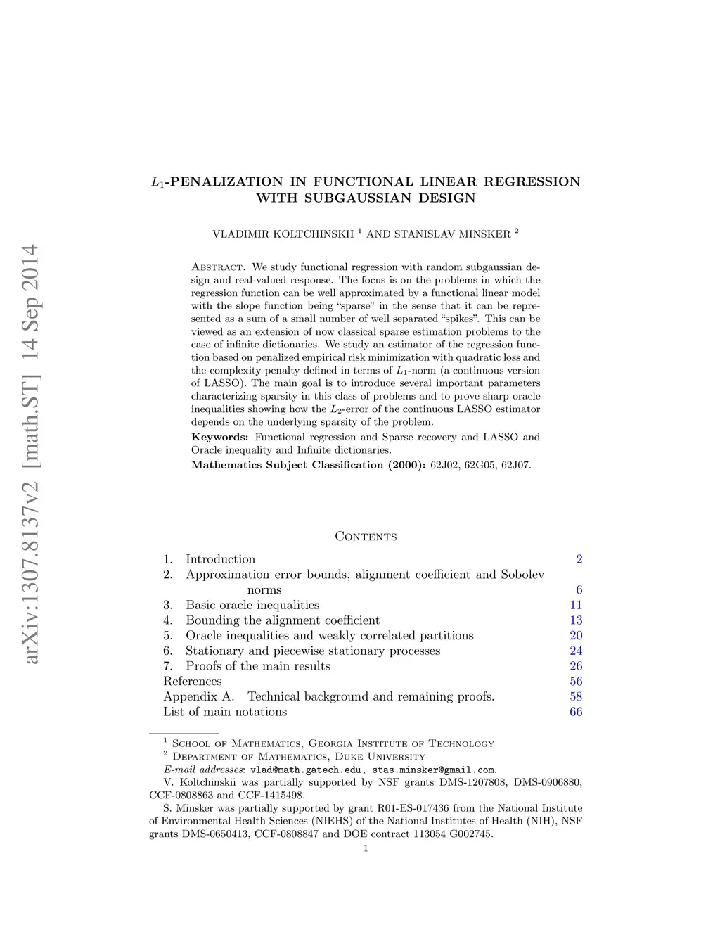 We study functional regression with random subgaussian design and real-valued response. The focus is on the problems in which the regression function can be well approximated by a functional linear model with the slope function being "sparse" in the sense that it can be represented as a sum of a small number of well separated "spikes". This can be viewed as an extension of now classical sparse estimation problems to the case of infinite dictionaries. We study an estimator of the regression function based on penalized empirical risk minimization with quadratic loss and the complexity penalty defined in terms of -norm (a continuous version of LASSO). The main goal is to introduce several important parameters characterizing sparsity in this class of problems and to prove sharp oracle inequalities showing how the -error of the continuous LASSO estimator depends on the underlying sparsity of the problem.