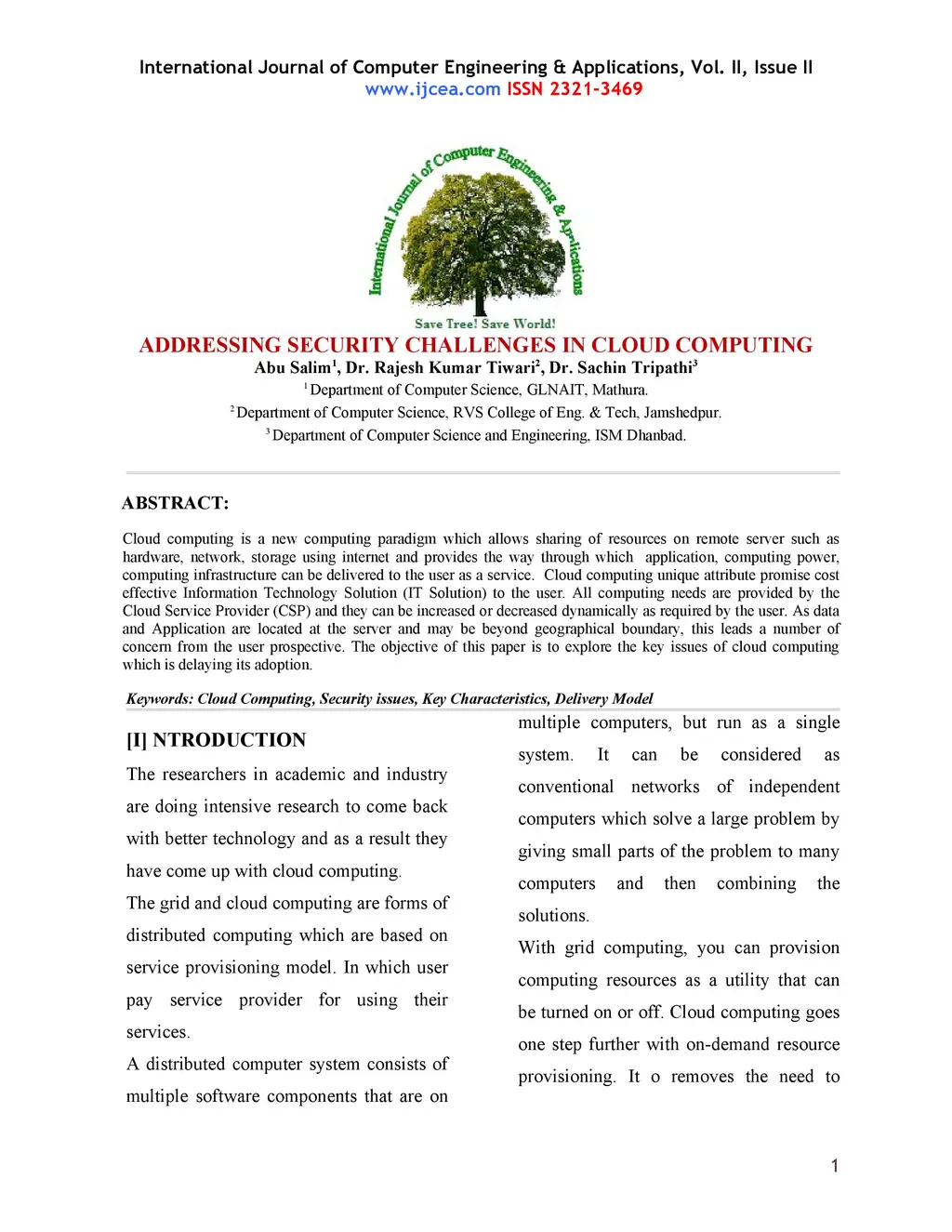 Cloud computing is a new computing paradigm which allows sharing of resources on remote server such as hardware, network, storage using internet and provides the way through which application, computing power, computing infrastructure can be delivered to the user as a service. Cloud computing unique attribute promise cost effective Information Technology Solution (IT Solution) to the user. All computing needs are provided by the Cloud Service Provider (CSP) and they can be increased or decreased dynamically as required by the user. As data and Application are located at the server and may be beyond geographical boundary, this leads a number of concern from the user prospective. The objective of this paper is to explore the key issues of cloud computing which is delaying its adoption.