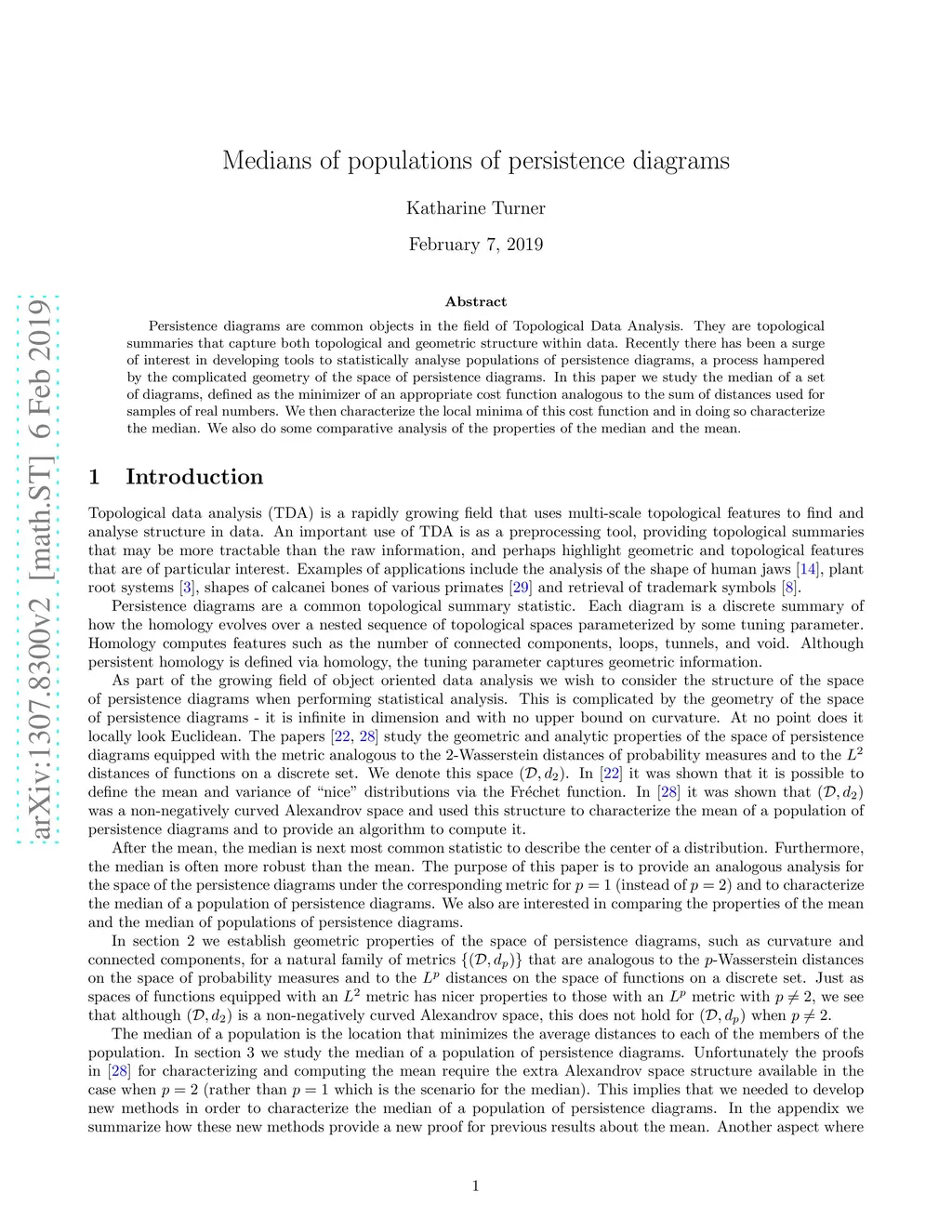 Persistence diagrams are common objects in the field of Topological Data Analysis. They are topological summaries that capture both topological and geometric structure within data. Recently there has been a surge of interest in developing tools to statistically analyse populations of persistence diagrams, a process hampered by the complicated geometry of the space of persistence diagrams. In this paper we study the median of a set of diagrams, defined as the minimizer of an appropriate cost function analogous to the sum of distances used for samples of real numbers. We then characterize the local minima of this cost function and in doing so characterize the median. We also do some comparative analysis of the properties of the median and the mean.
