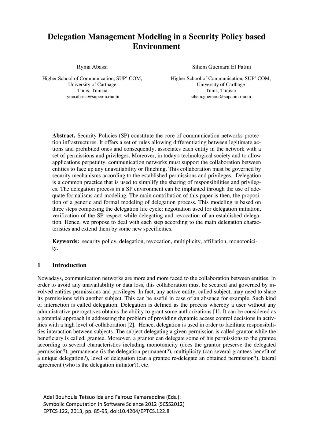 Delegation Management Modeling in a Security Policy based Environment