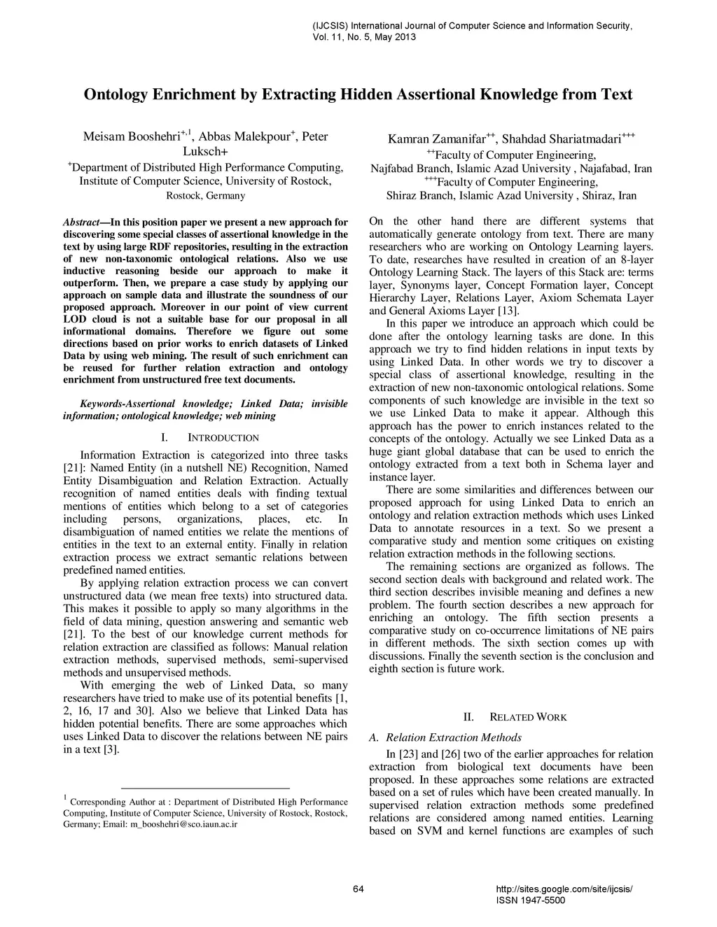 In this position paper we present a new approach for discovering some special classes of assertional knowledge in the text by using large RDF repositories, resulting in the extraction of new non-taxonomic ontological relations. Also we use inductive reasoning beside our approach to make it outperform. Then, we prepare a case study by applying our approach on sample data and illustrate the soundness of our proposed approach. Moreover in our point of view current LOD cloud is not a suitable base for our proposal in all informational domains. Therefore we figure out some directions based on prior works to enrich datasets of Linked Data by using web mining. The result of such enrichment can be reused for further relation extraction and ontology enrichment from unstructured free text documents.