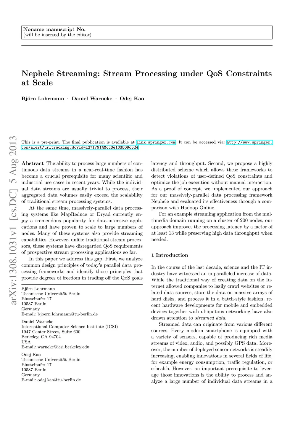 Nephele Streaming: Stream Processing Under QoS Constraints At Scale