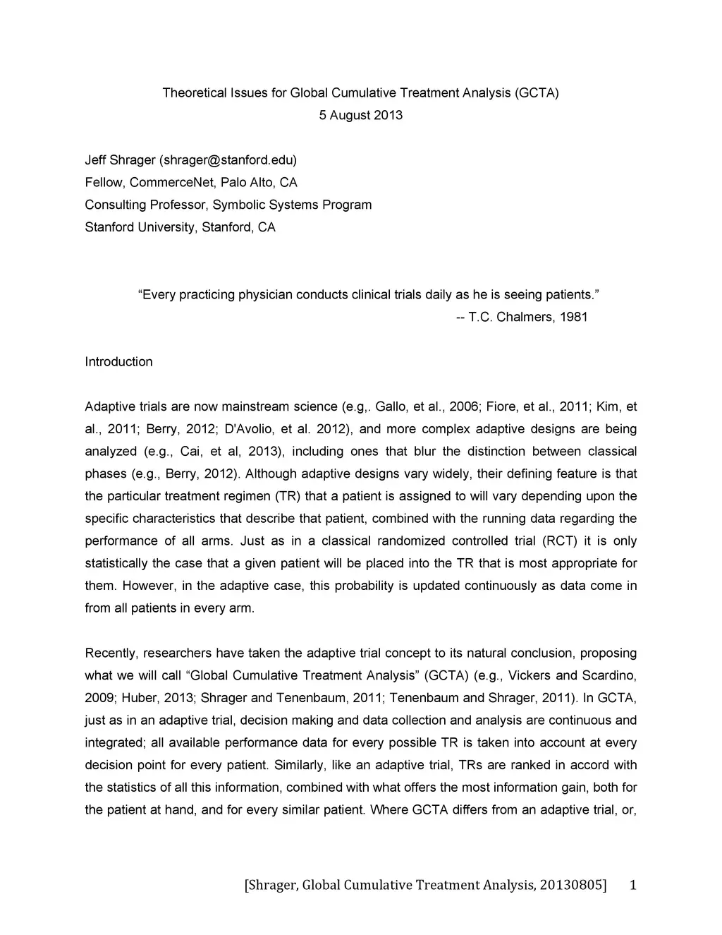 Adaptive trials are now mainstream science. Recently, researchers have taken the adaptive trial concept to its natural conclusion, proposing what we call "Global Cumulative Treatment Analysis" (GCTA). Similar to the adaptive trial, decision making and data collection and analysis in the GCTA are continuous and integrated, and treatments are ranked in accord with the statistics of this information, combined with what offers the most information gain. Where GCTA differs from an adaptive trial, or, for that matter, from any trial design, is that all patients are implicitly participants in the GCTA process, regardless of whether they are formally enrolled in a trial. This paper discusses some of the theoretical and practical issues that arise in the design of a GCTA, along with some preliminary thoughts on how they might be approached.