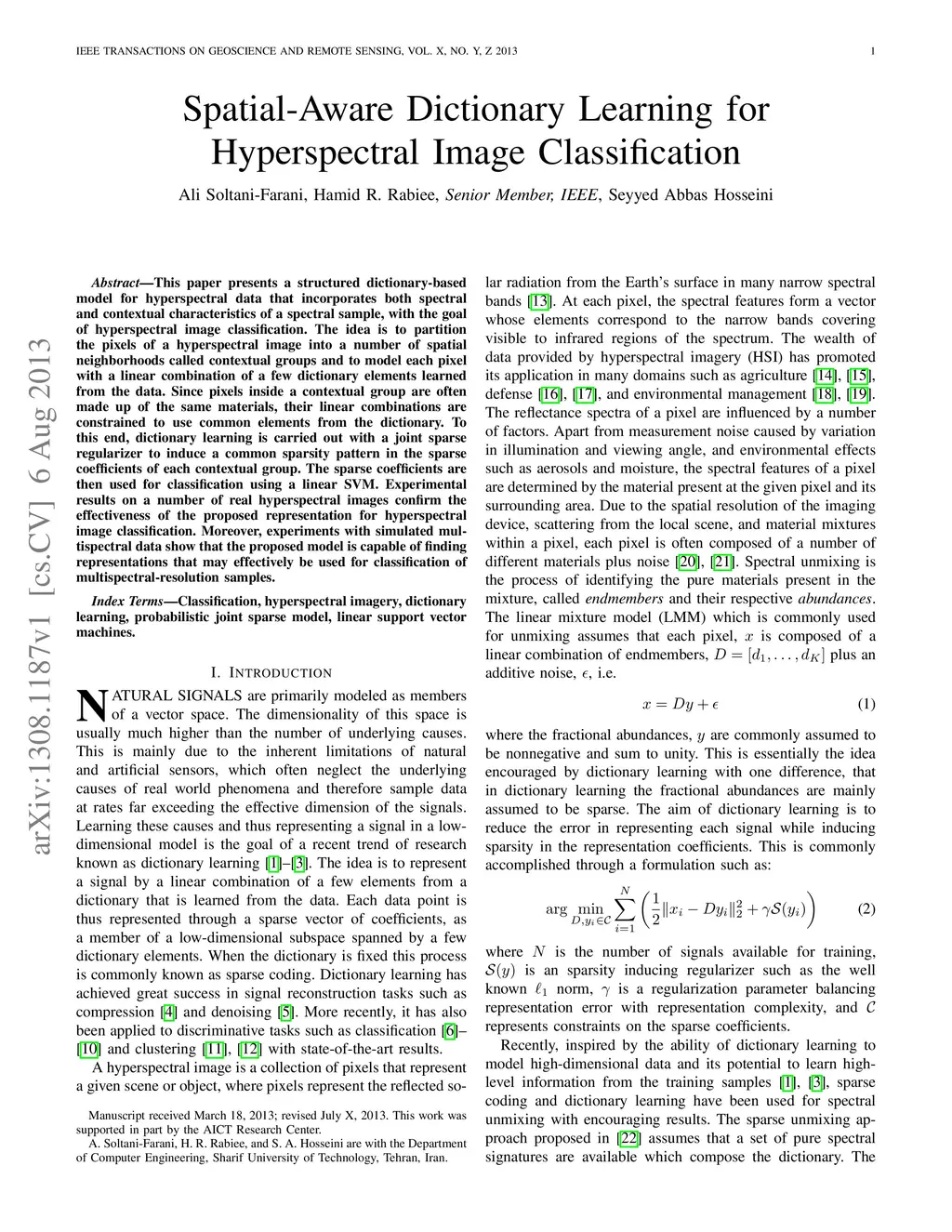 Spatial-Aware Dictionary Learning for Hyperspectral Image Classification
