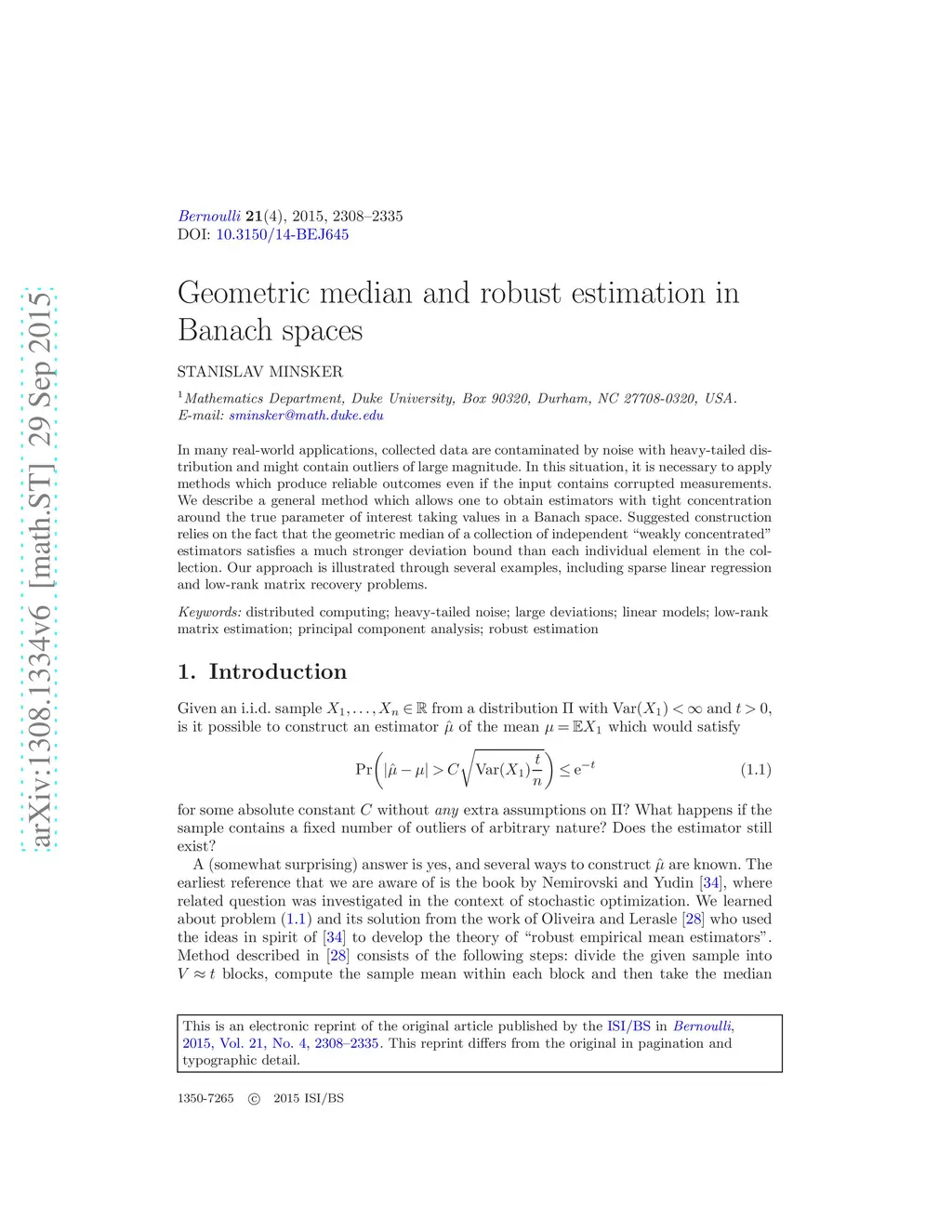 Geometric median and robust estimation in Banach spaces