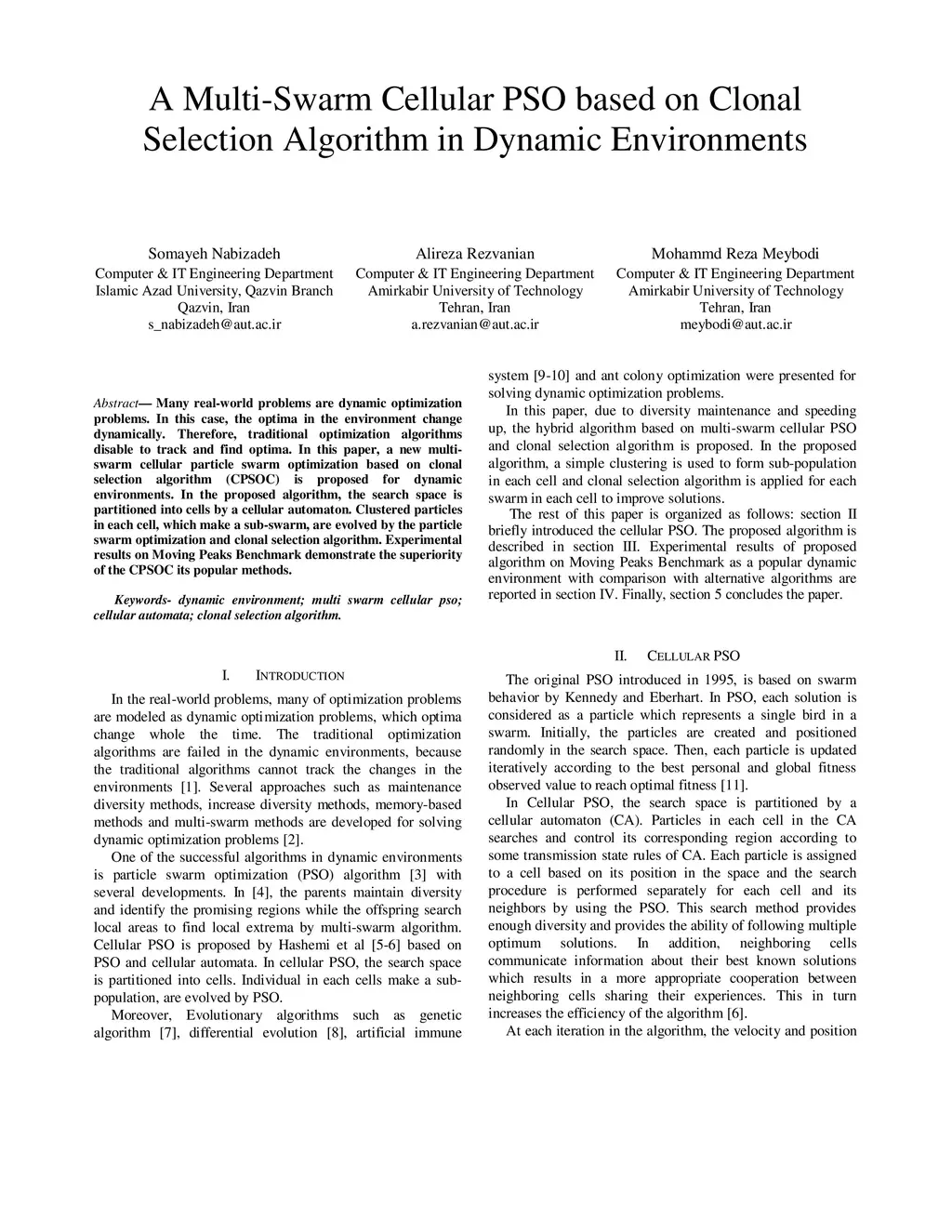 A Multi-Swarm Cellular PSO based on Clonal Selection Algorithm in