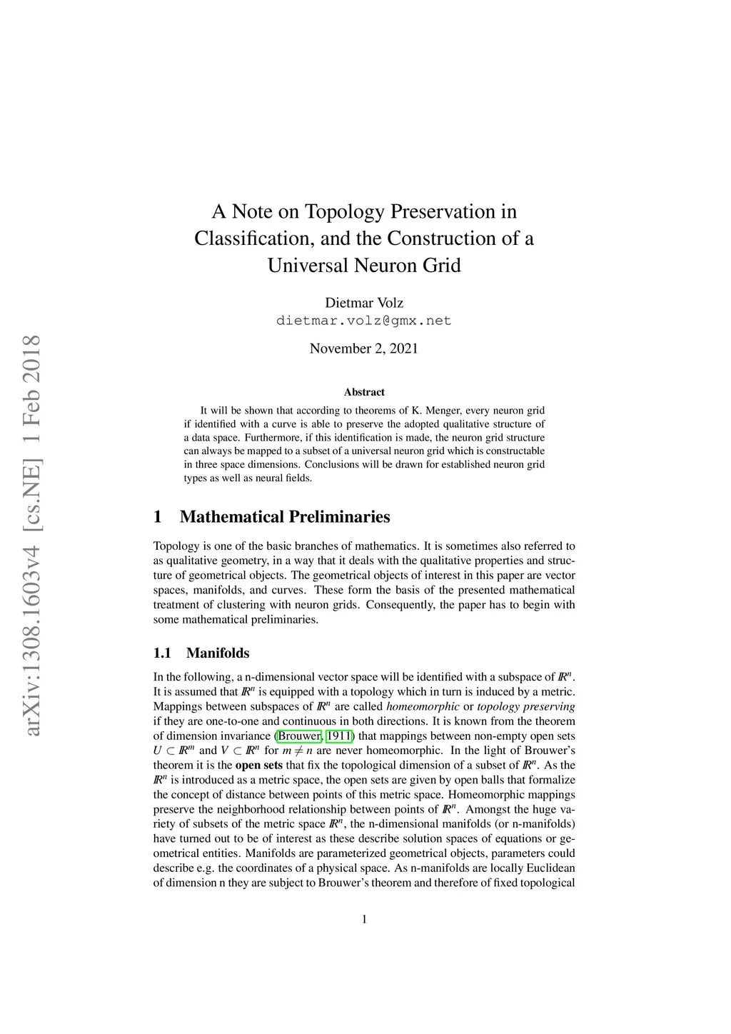 It will be shown that according to theorems of K. Menger, every neuron grid if identified with a curve is able to preserve the adopted qualitative structure of a data space. Furthermore, if this identification is made, the neuron grid structure can always be mapped to a subset of a universal neuron grid which is constructable in three space dimensions. Conclusions will be drawn for established neuron grid types as well as neural fields.