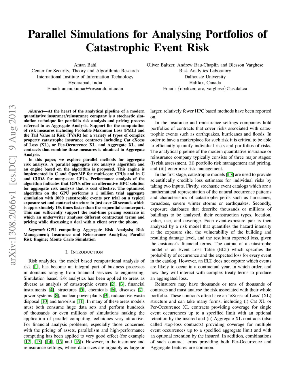 Parallel Simulations for Analysing Portfolios of Catastrophic Event Risk