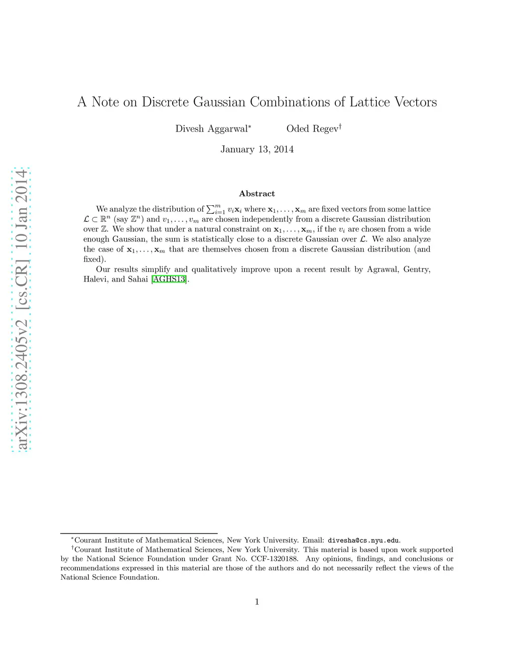 We analyze the distribution of where are fixed vectors from some lattice (say ) and are chosen independently from a discrete Gaussian distribution over . We show that under a natural constraint on , if the are chosen from a wide enough Gaussian, the sum is statistically close to a discrete Gaussian over . We also analyze the case of that are themselves chosen from a discrete Gaussian distribution (and fixed). Our results simplify and qualitatively improve upon a recent result by Agrawal, Gentry, Halevi, and Sahai \cite{AGHS13}.