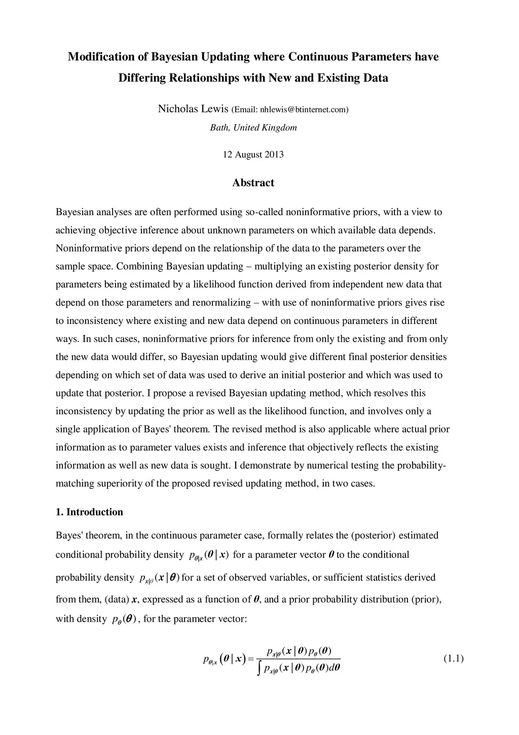 Modification of Bayesian Updating where Continuous Parameters have