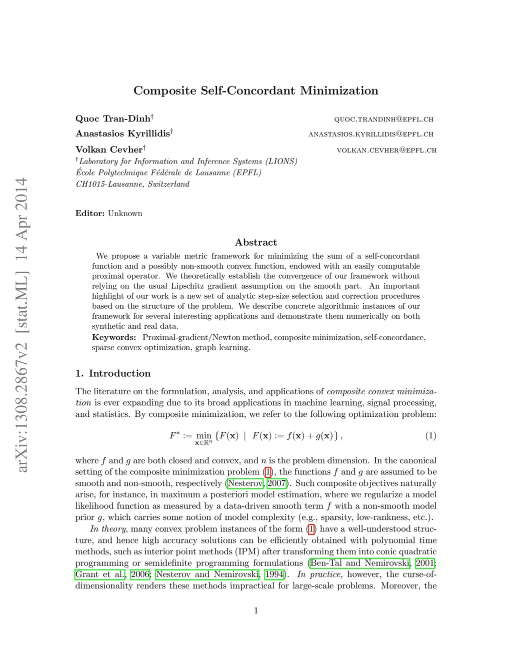 We propose a variable metric framework for minimizing the sum of a self-concordant function and a possibly non-smooth convex function, endowed with an easily computable proximal operator. We theoretically establish the convergence of our framework without relying on the usual Lipschitz gradient assumption on the smooth part. An important highlight of our work is a new set of analytic step-size selection and correction procedures based on the structure of the problem. We describe concrete algorithmic instances of our framework for several interesting applications and demonstrate them numerically on both synthetic and real data.