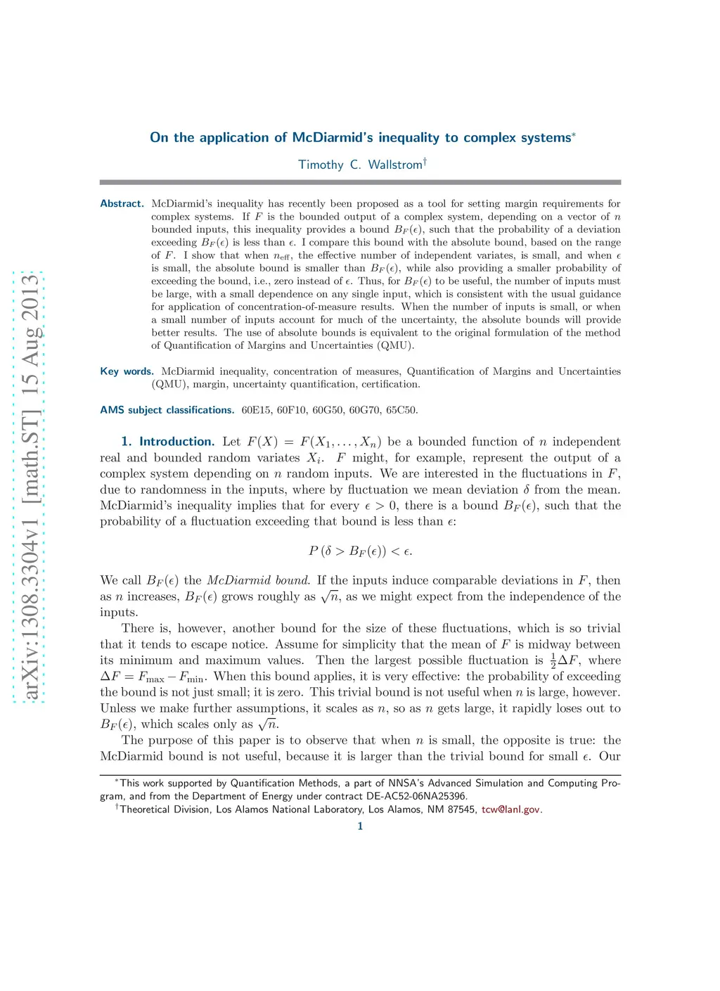 On the application of McDiarmid's inequality to complex systems