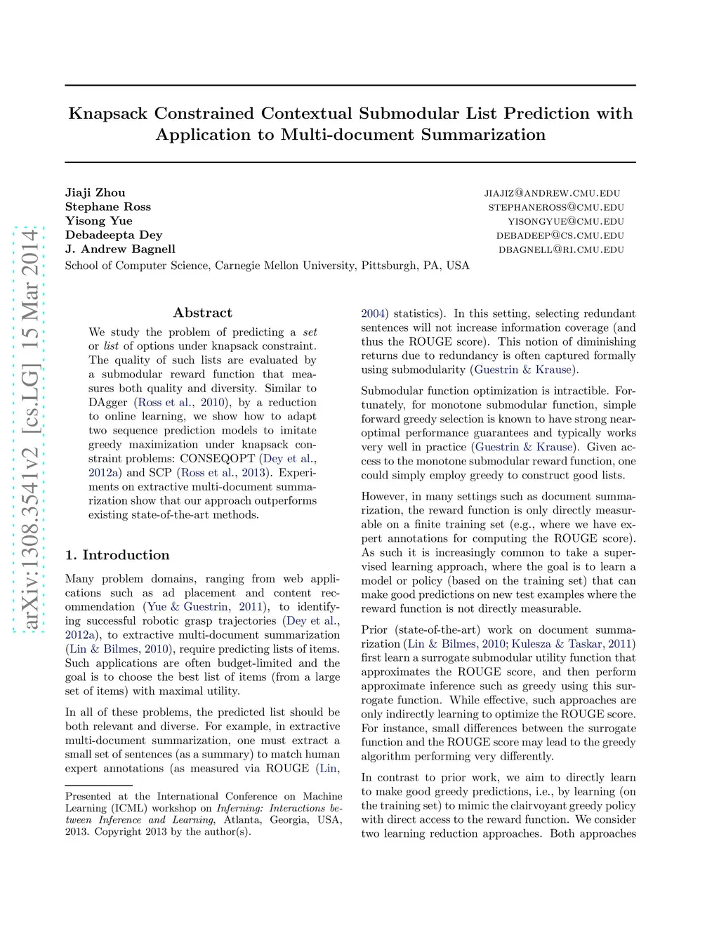 Application to Multi-document Summarization