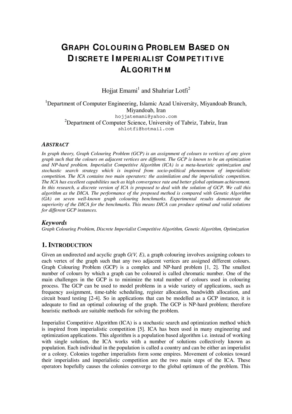 Graph Colouring Problem Based on Discrete Imperialist Competitive