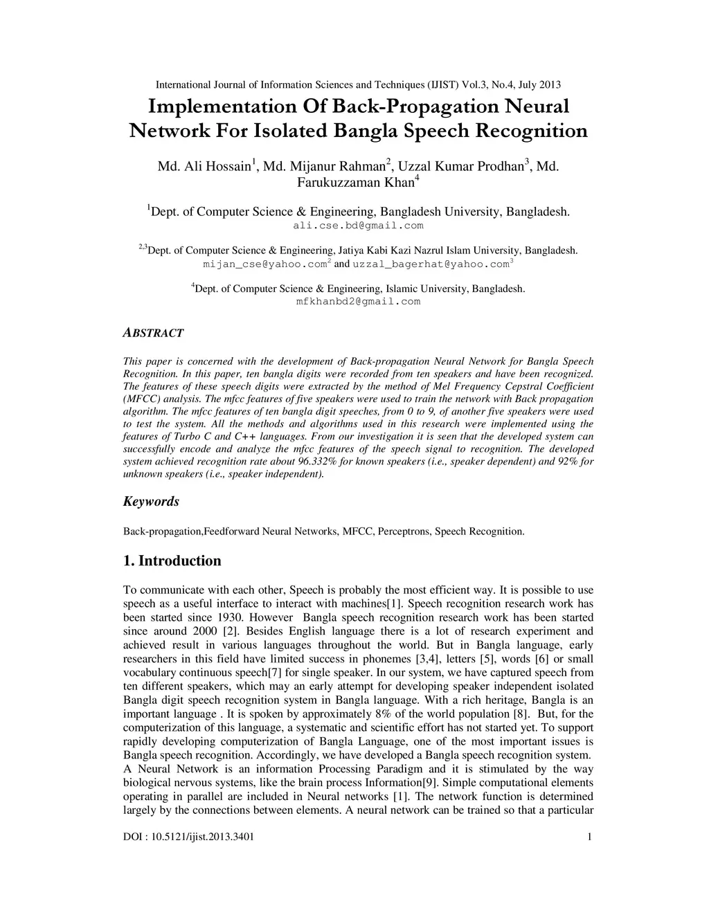 Implementation Of Back-Propagation Neural Network For Isolated Bangla