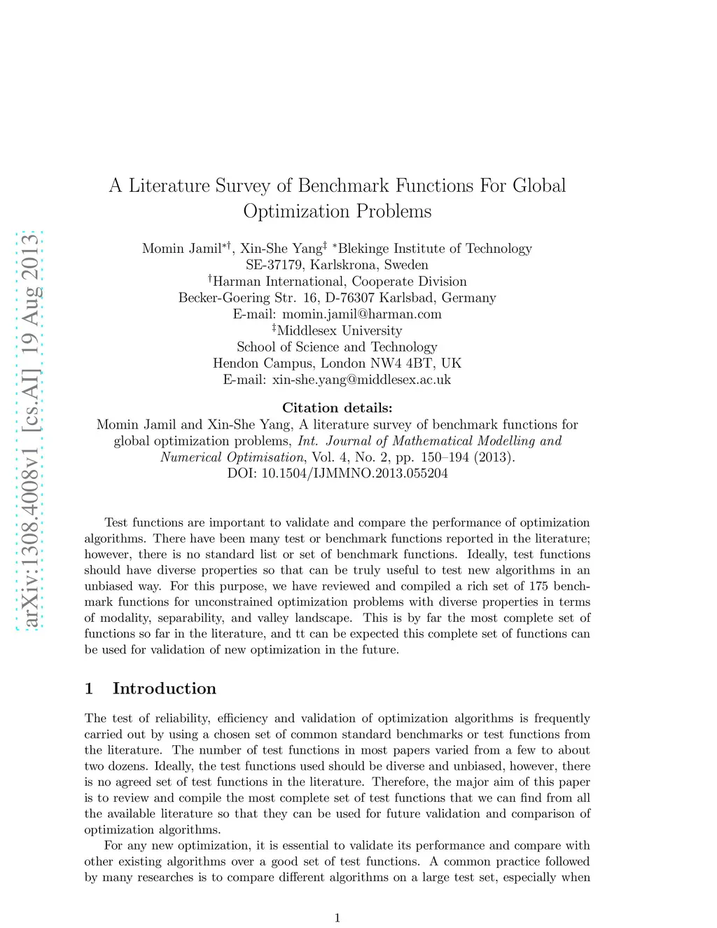 A Literature Survey of Benchmark Functions For Global Optimization