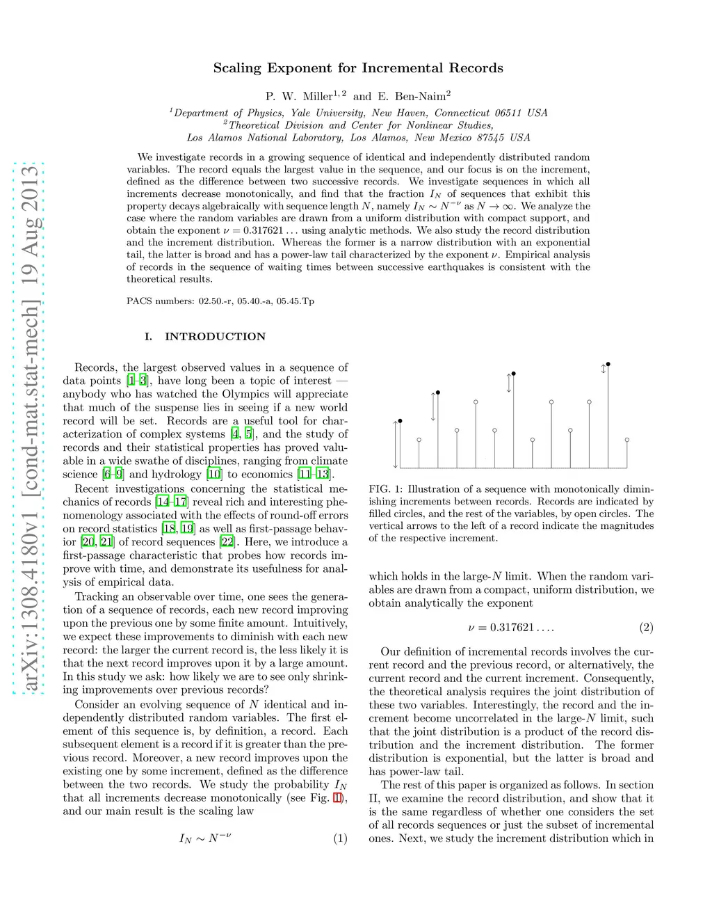 Scaling Exponent for Incremental Records