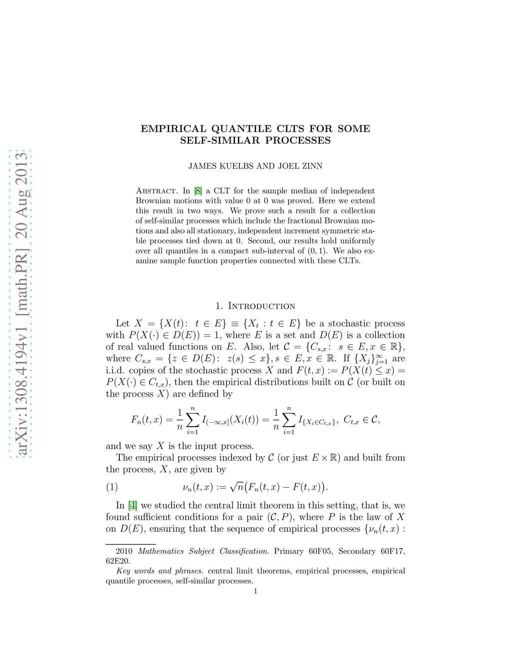 In a paper of Jason Swanson, a CLT for the sample median of independent Brownian motions with value 0 at 0 was proved. Here we extend this result in two ways. We prove such a result for a collection of self-similar processes which include the fractional Brownian motions, all stationary, independent increment symmetric stable processes tied down at 0 as well as iterated and integrated Brownian motions. Second, our results hold uniformly over all quantiles in a compact sub-interval of (0,1). We also examine sample function properties connected with these CLTs.