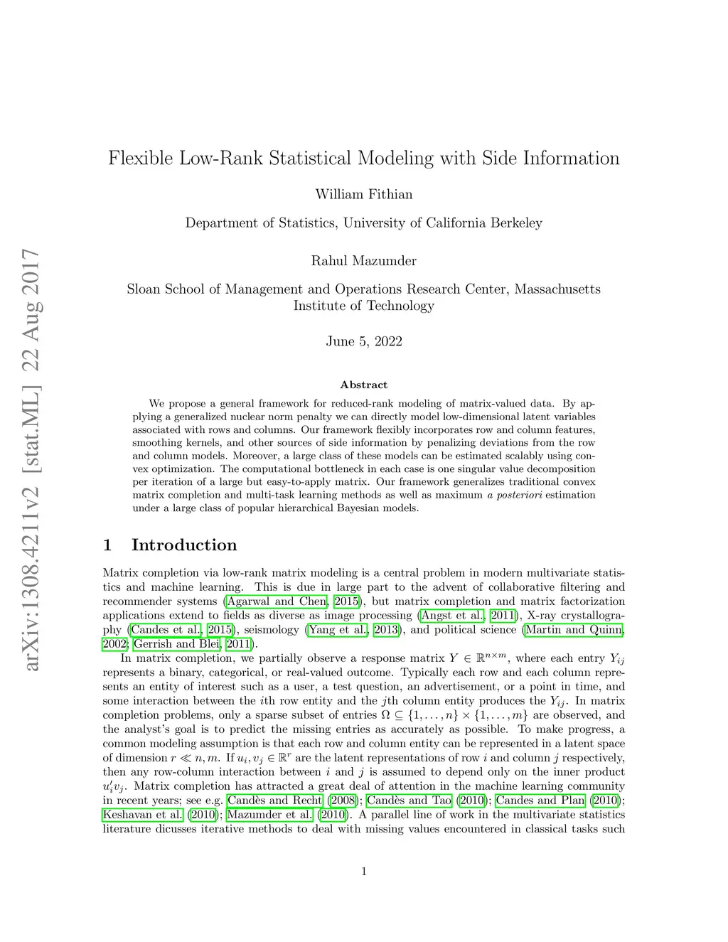 Flexible Low-Rank Statistical Modeling with Side Information
