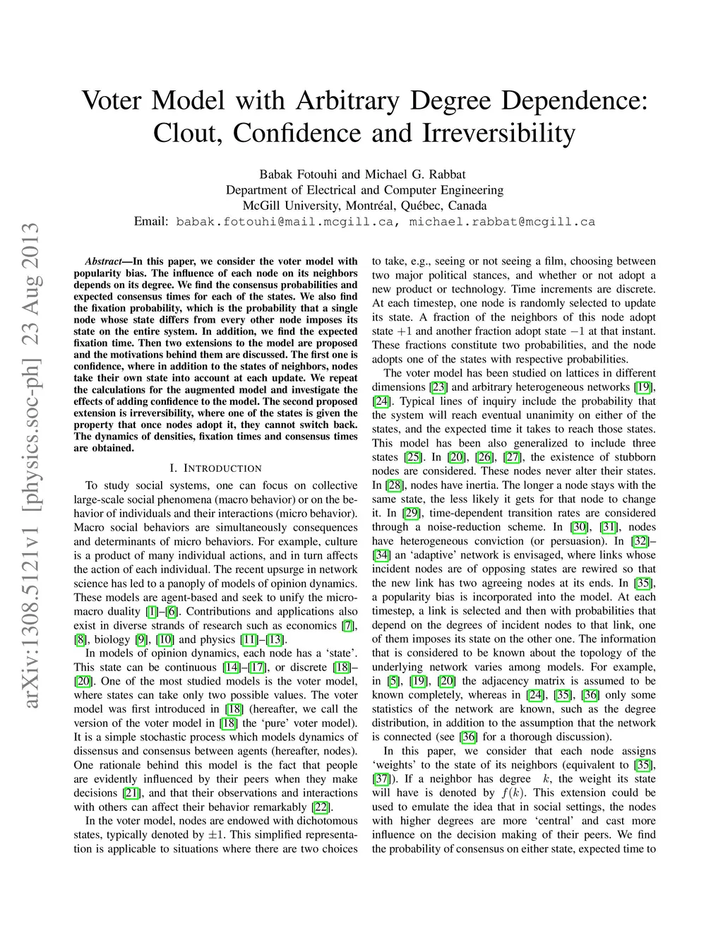 In this paper, we consider the voter model with popularity bias. The influence of each node on its neighbors depends on its degree. We find the consensus probabilities and expected consensus times for each of the states. We also find the fixation probability, which is the probability that a single node whose state differs from every other node imposes its state on the entire system. In addition, we find the expected fixation time. Then two extensions to the model are proposed and the motivations behind them are discussed. The first one is confidence, where in addition to the states of neighbors, nodes take their own state into account at each update. We repeat the calculations for the augmented model and investigate the effects of adding confidence to the model. The second proposed extension is irreversibility, where one of the states is given the property that once nodes adopt it, they cannot switch back. The dynamics of densities, fixation times and consensus times are obtained.